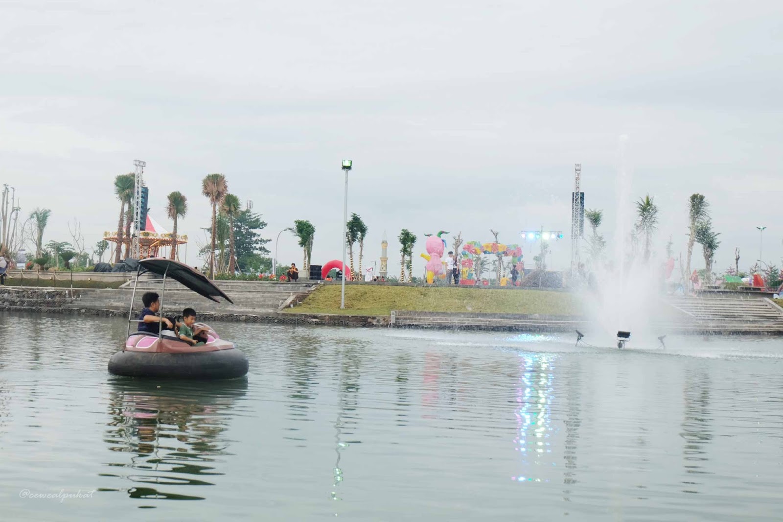 Oya, selain disuguhkan dengan festival of light masih ada juga danau buatan yang rasa lembang. Di sini adalah tempat selfiebale bangettt Dan kalian juga bisa menikmati permainan bebek air yang berharga 20 ribu rupiah tiketnya. Gimana? Enakk kan??